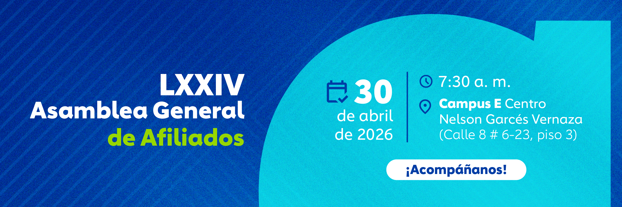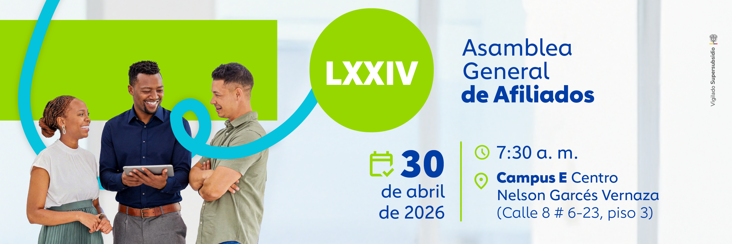 Convocan a los afiliados a esta corporación a la reunión de la LXXIV Asamblea General Ordinaria de Afiliados, la cual se llevará a cabo el próximo jueves 30 de abril de 2026, a las 7:30 am. Deberá presentarse en el piso 3 del Campus E Centro Nelson Garcés Vernaza de Comfandi, localizado en la calle 8 No. 6-23 de la ciudad de Santiago de Cali.